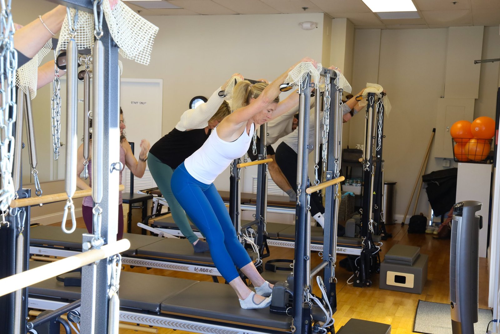 A 6-week series of classes: foundational instruction, learning the equipment, setup, springs, and core principles. Slower pace, coached, beginner-safe.